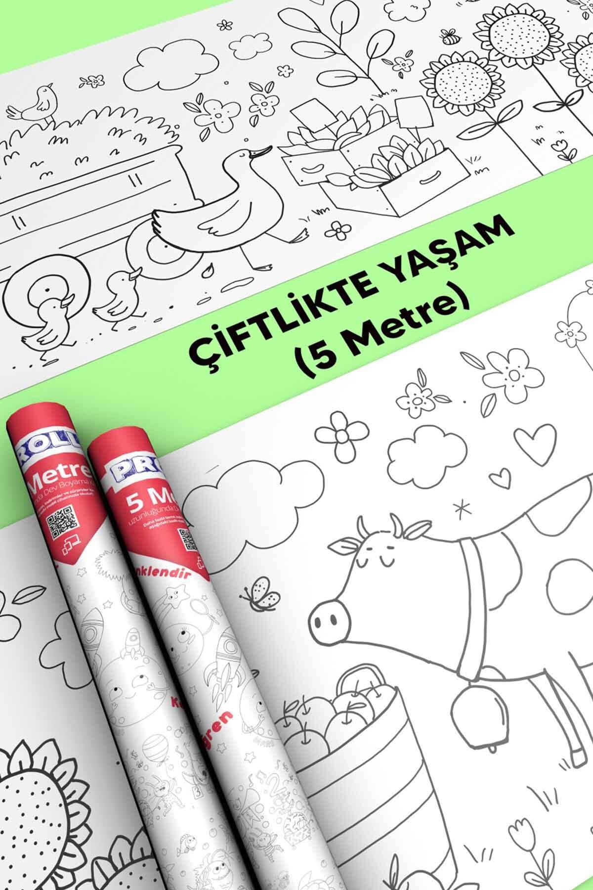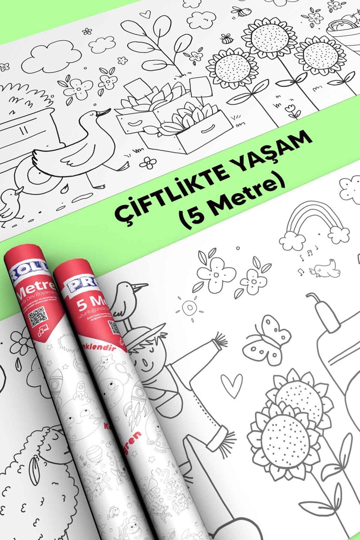 Çiftlik Hayatı Boyama Kağıdı, çocukları doğanın içinde eğlenceli bir yolculuğa davet ediyor. 5 metre uzunluğundaki dev boyama kağıdı, çocukların çiftlik yaşamını keşfetmelerini ve hayvanlar, traktörler, sebzeler gibi çiftlikte yer alan öğelerle tanışmalarını sağlıyor. Bu renkli ve eğitici tema, çocukların hem öğrenmesini hem de yaratıcılıklarını serbest bırakmasını destekler.