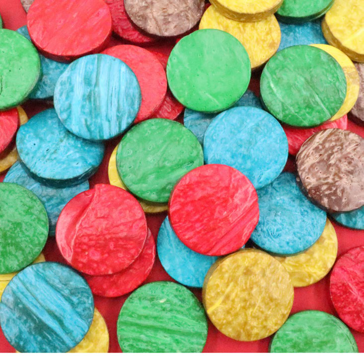 Coconut Shell Circles, doğal hindistan cevizi kabuğundan üretilmiş, yuvarlak formda ahşap pullardan oluşan çok amaçlı bir aktivite ve oyun materyalidir. Doğal dokusu ve hafif yapısı sayesinde hem eğitsel hem de yaratıcı çalışmalarda güvenle kullanılabilir.